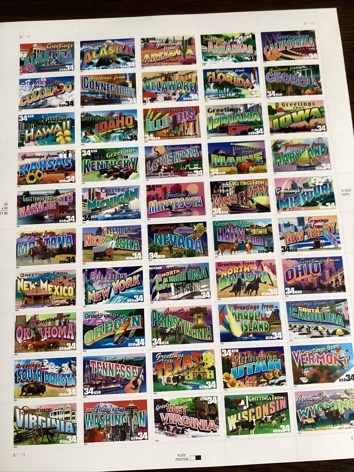 Scott#3561-3610, Greetings from America, Pane of 50 (34cent) Stamps-2002-MNH-US.