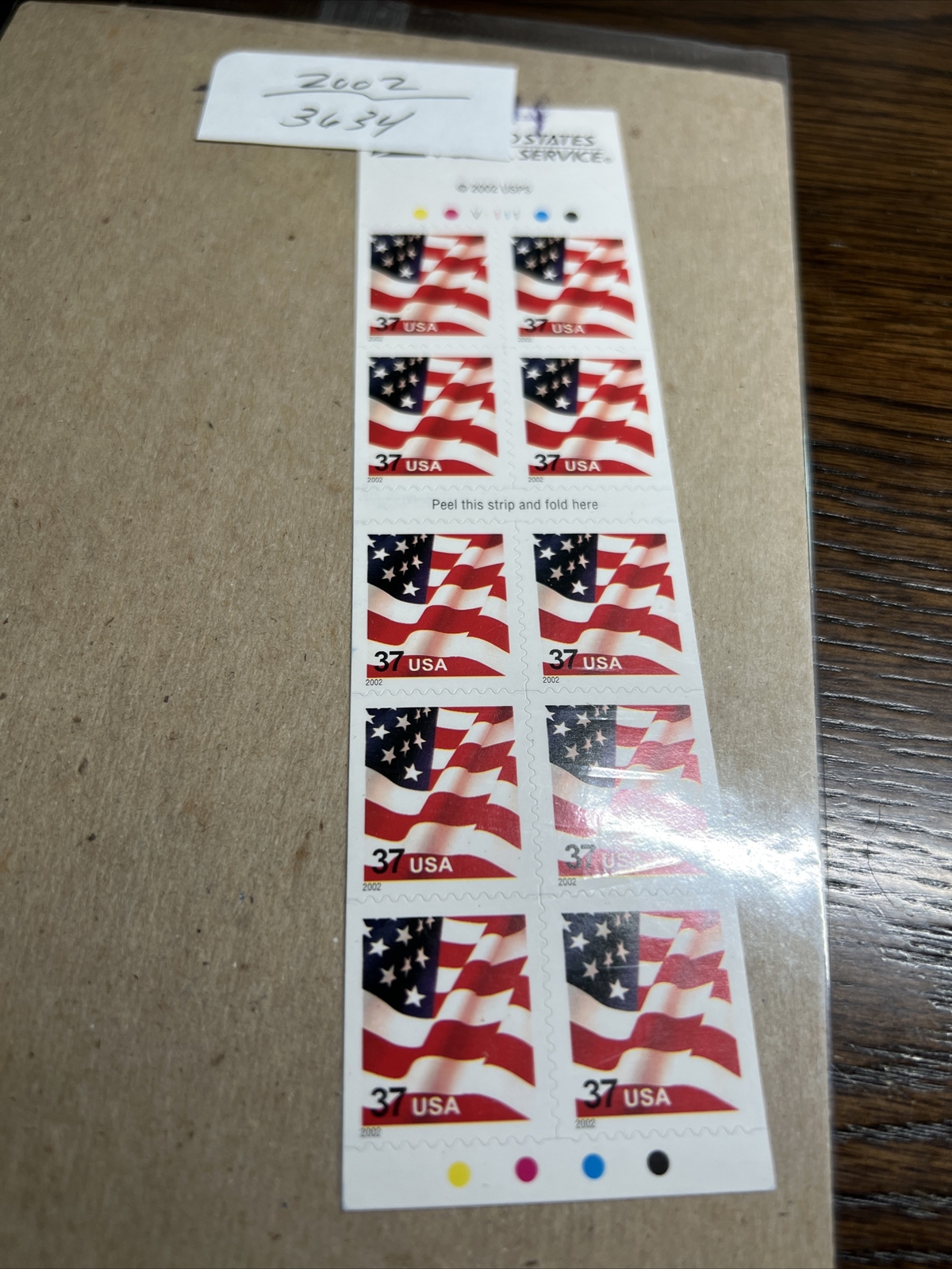 Scott#3634a Flag- Bklt. Pane of 10-MNH-2002.
