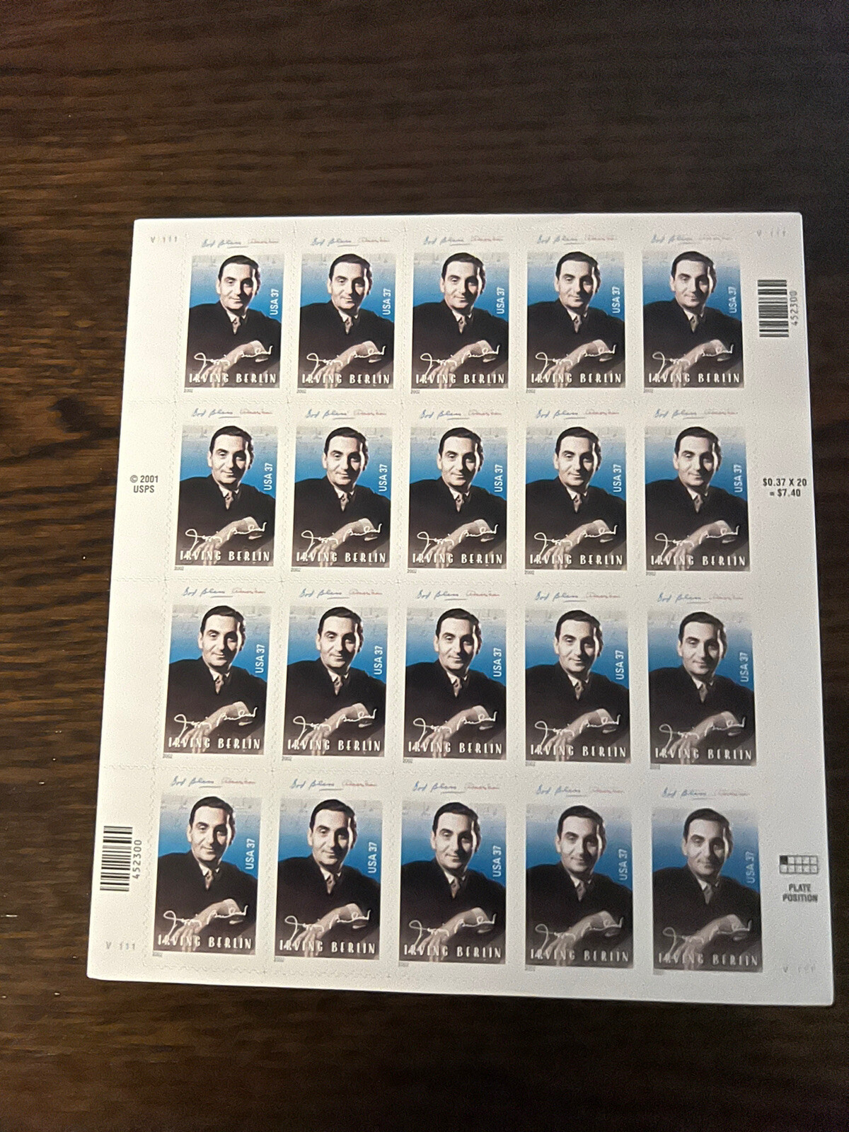SCOTT #3669 37c IRVING BERLIN SHEET OF 20 MNH STAMPS-2002.