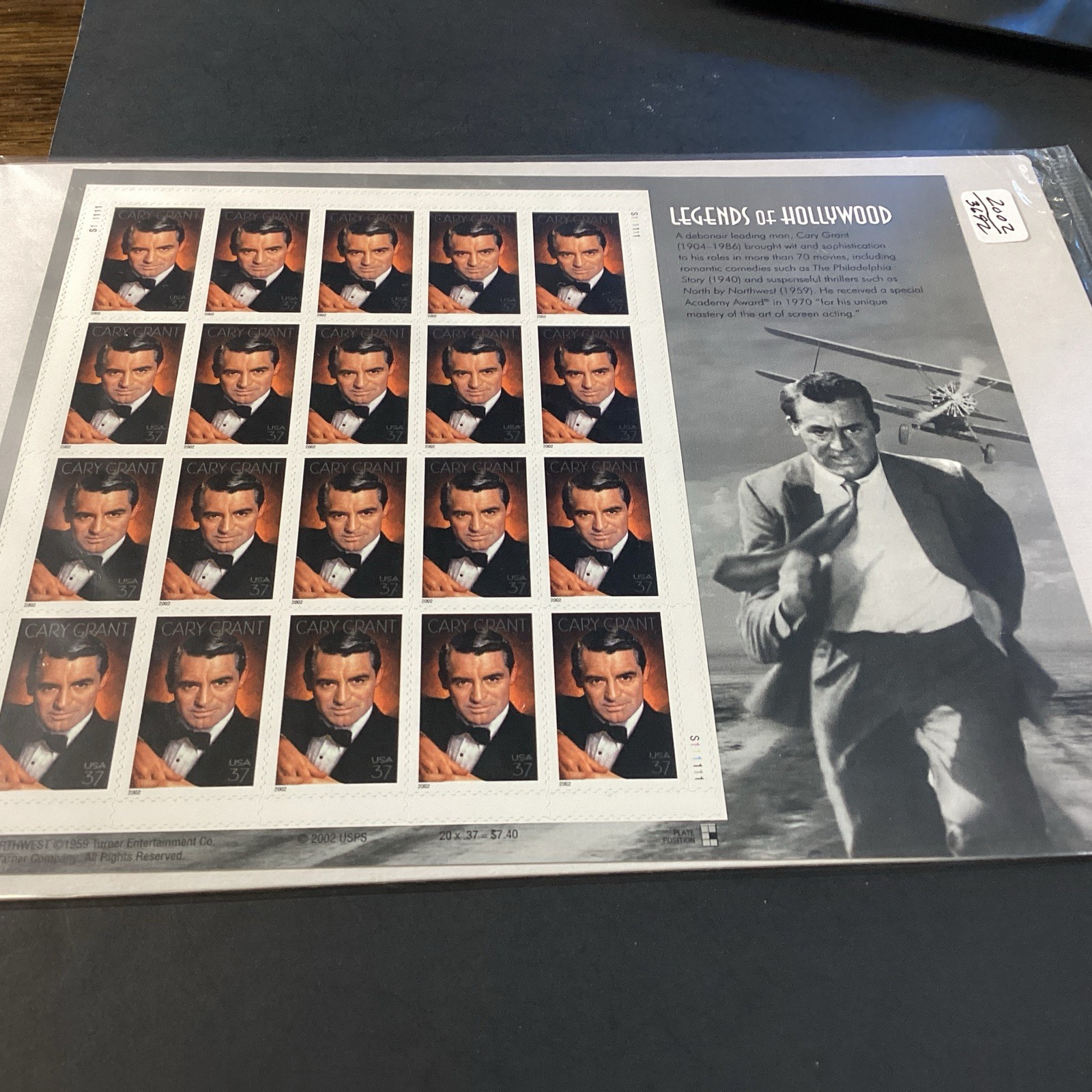 Scott#3692 -Cary Grant-Legends of Hollywood -Sheet of 20 Stamps- 2002-NIP-US. Shipped with USPS Ground Advantage.