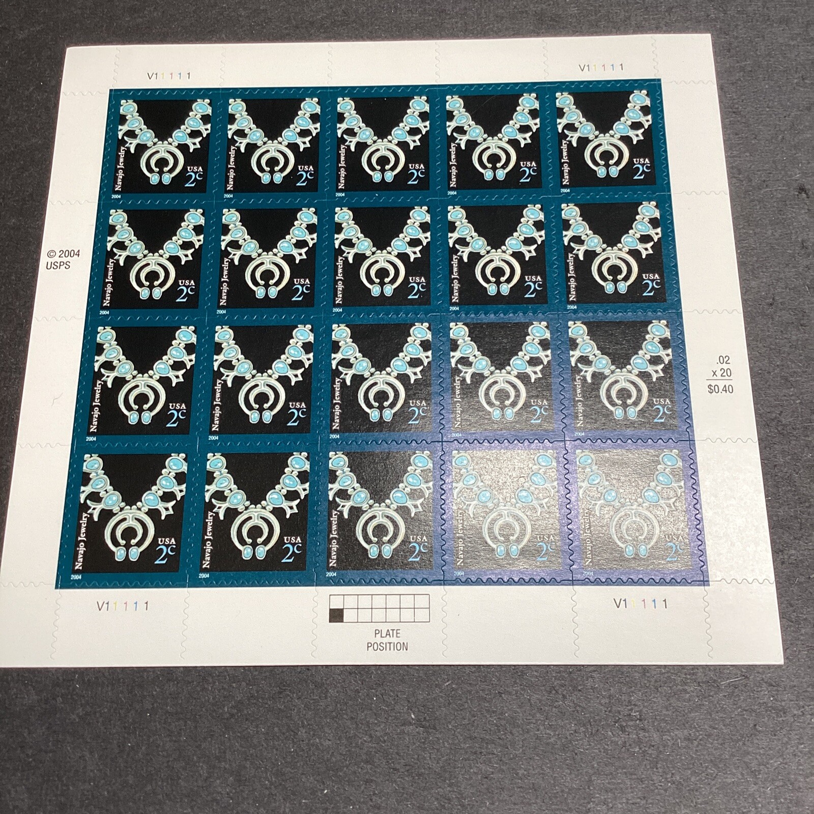 Scott 3750-2004 Navajo Necklace Two Cent Stamp-Plate#V11111/MNH-US.