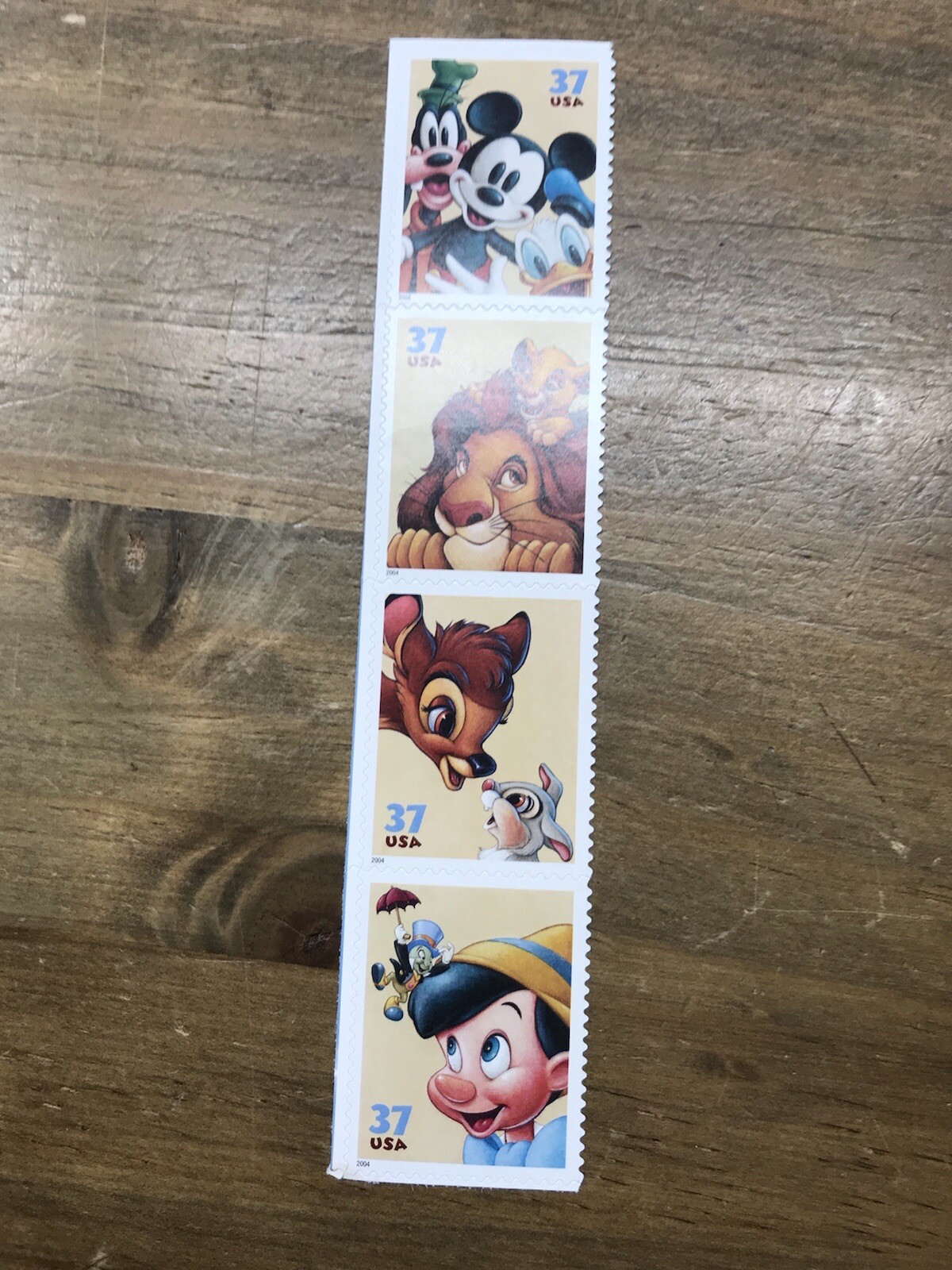 Scott#3865-68-The Art Of Disney (2004) MNH Strip of 5. Shipped with USPS First Class.