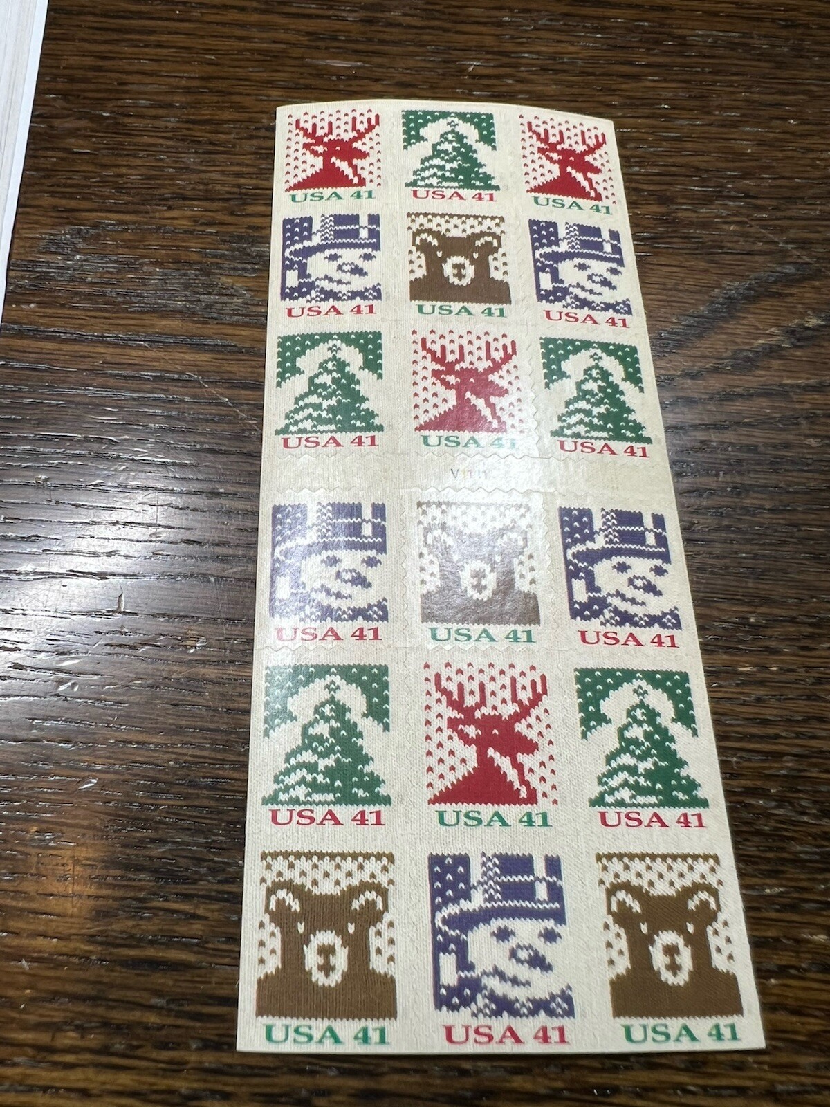 Scott#4215-18 41¢ Holiday Knits Self-Adhesive ATM Bklt Block Of 18 Stamps MNH-US. Shipped with USPS Ground Advantage.