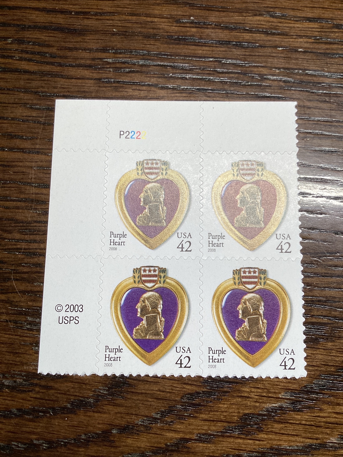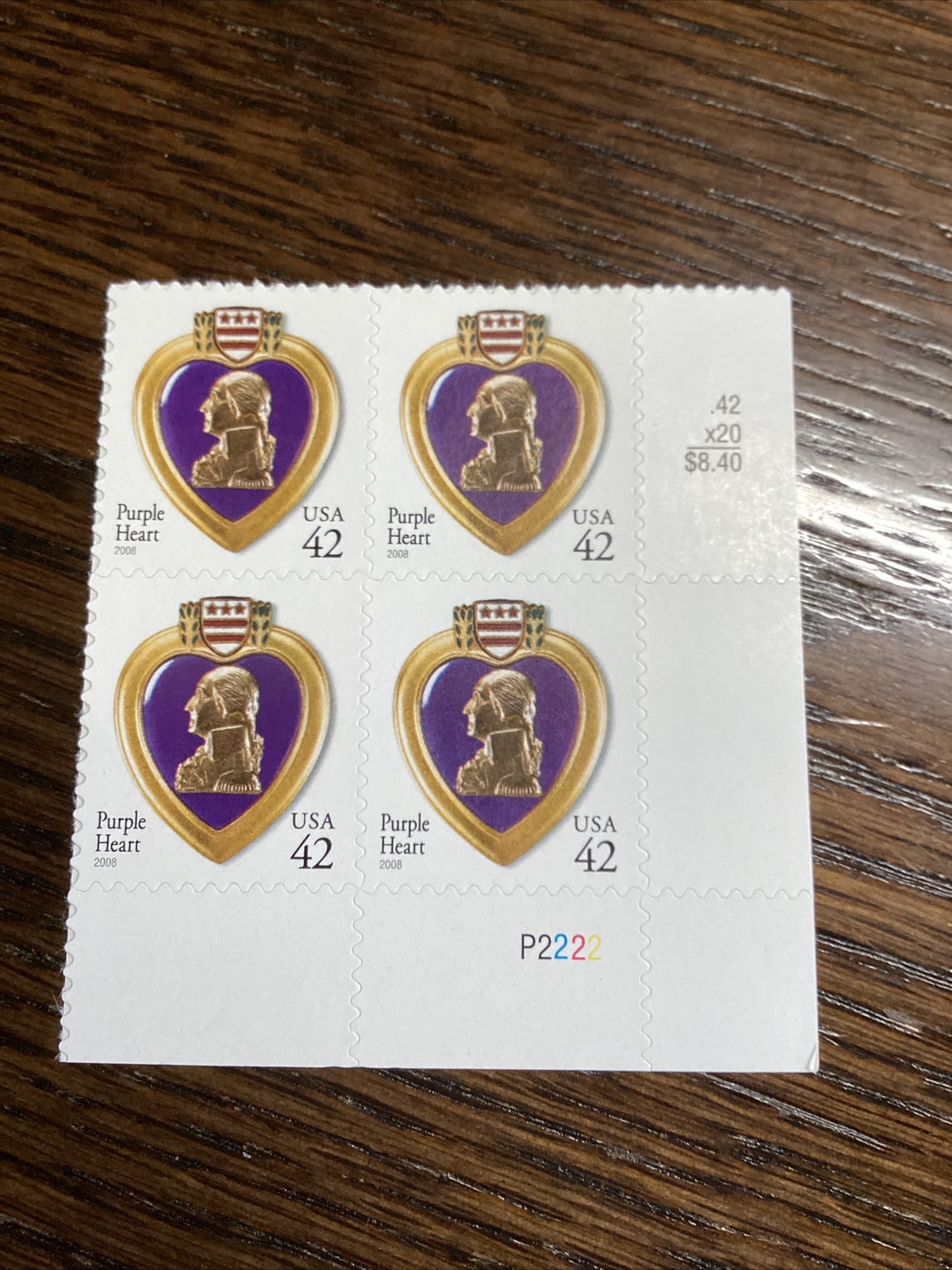 Scott #4264Purple Heart Plate Block of 4 Stamps - MNH-2008-US-Buyers Choice Of 1.