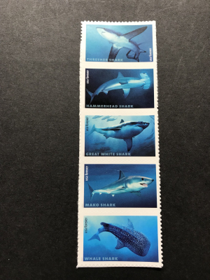 Scott #5223-27 Sharks (Vertical Strip of 5) 2017 Mint NH