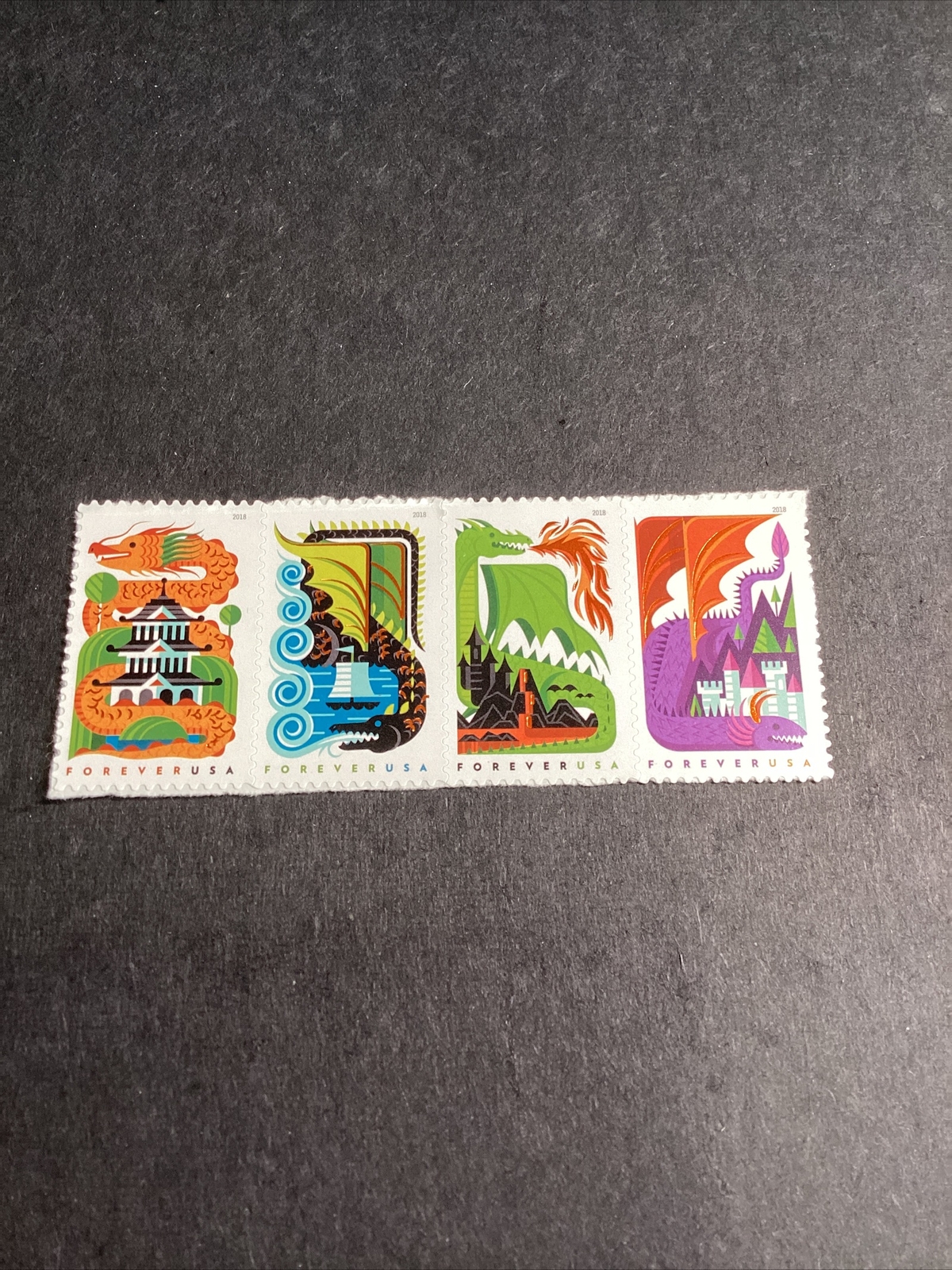 Scott#5307-10-2018 Dragons, Mythological Creatures, Strip of 4 Mint F/VF NH-US.