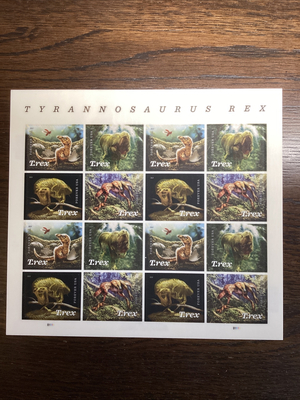 Scott # 5410-5413, Tyrannosaurus Rex - Pane of 16 Forever Stamps - 2019- MNH-US.