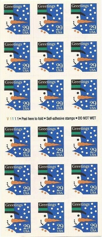 Snowman Full Pane of Eighteen 29 Cent Postage Stamps Scott 2803a