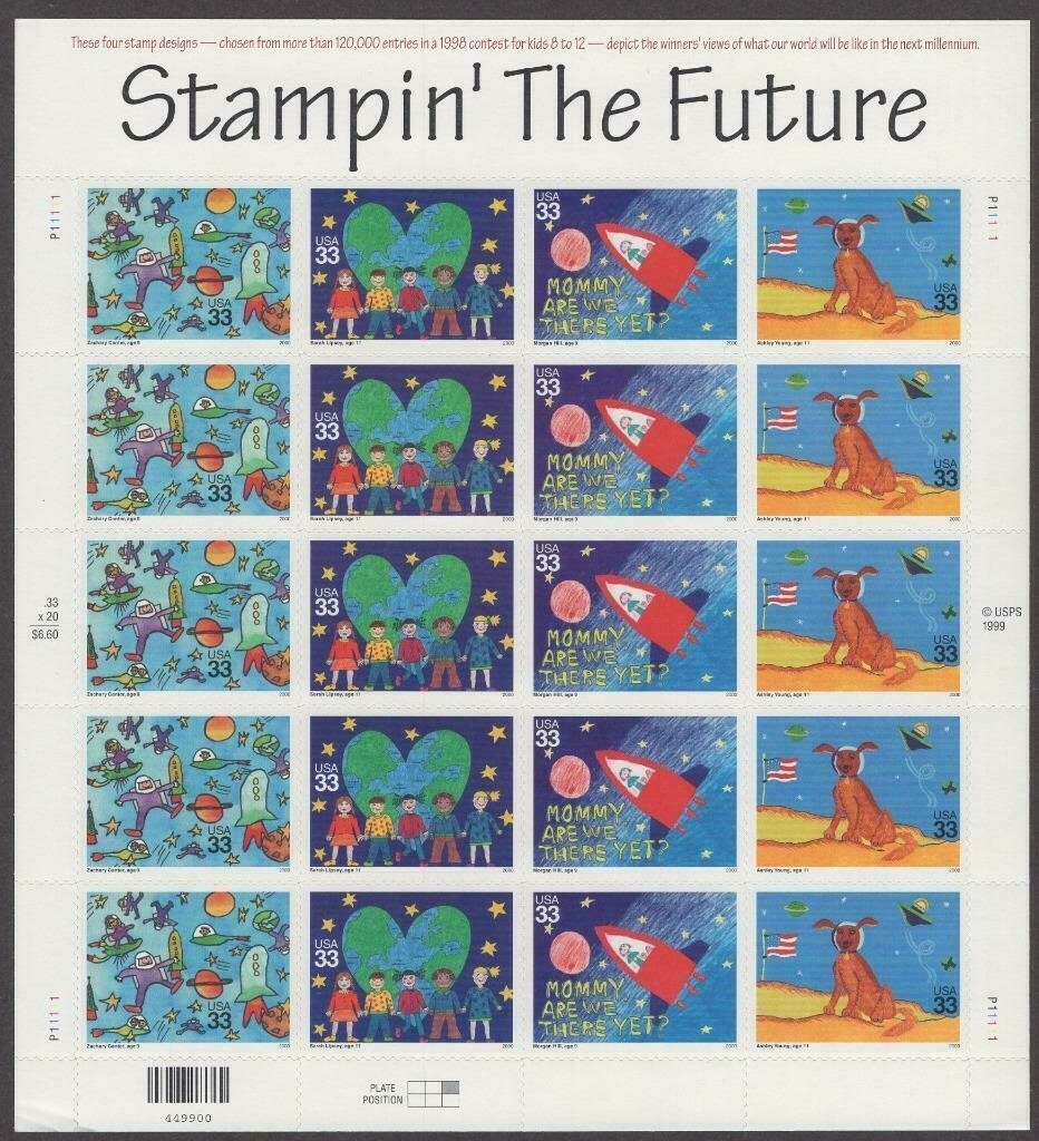 Stampin' The Future Sheet of Twenty 33 Cent Postage Stamps Scott 3414-17