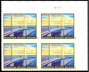 Sunshine Skyway Bridge Plate Block of Four $5.15 Priority Mail Stamps Scott 4649