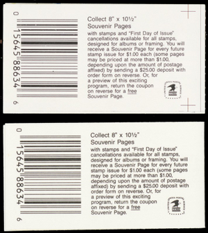 The test booklet has a back inside write up on the American Garden stamps while the issued booklet has an ad for souvenir pages. RARE!