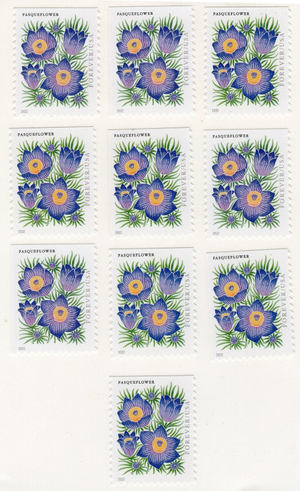 You will receive 10 of these Unused Forever (current 60c rate) Pasqueflower Forever stamp as pictured. Perfect to use for RSVP envelope postage.