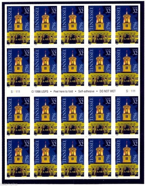 Tennessee Bicentennial Pane of Twenty 32 Cent Postage Stamps Scott 3070a