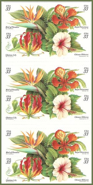 Tropical Flowers: Bird of Paradise Pane of Twenty 33 Cent Postage Stamps 3310-13
