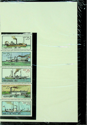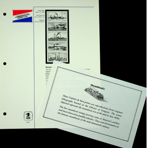 United States Commemorative Steamboat Stamps with Deluxe Mount and special album page and set of 4 Currier & Ives Prints - 1989.  They are part of the US Commemorative Collection from the US Postal Service.