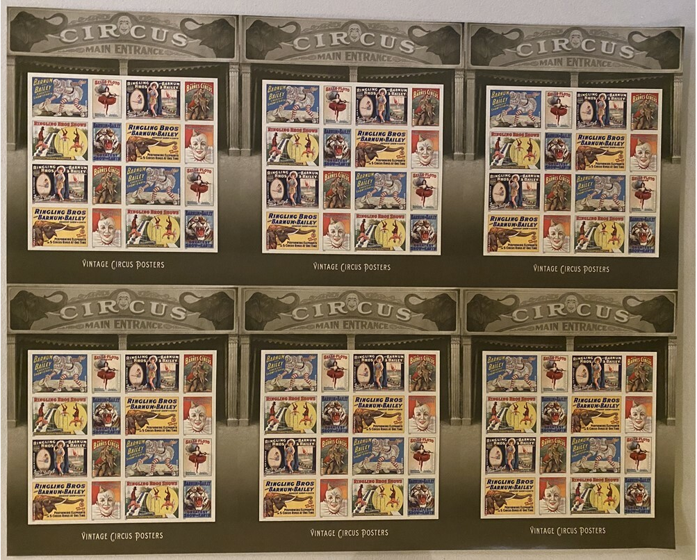 Vintage Circus Posters Press Sheet of Six Panes of 16 - Stamps Each
