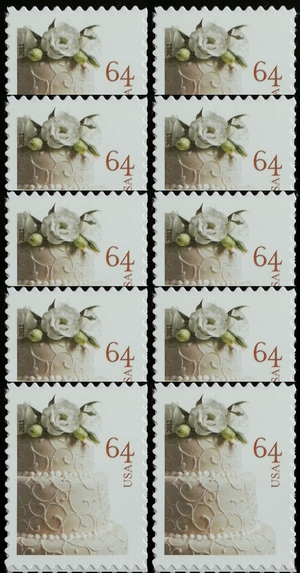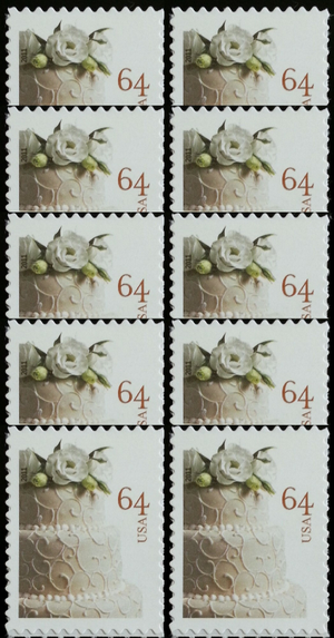 Wedding Cake PACK of TEN 64 Cent Postage Stamps Scott 4521