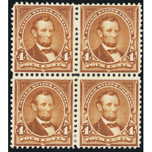 280, Mint NH/LH 4¢ VF Block of Four Stamps SCV $220 - Stuart Katz