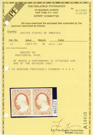 No refunds will be made after 60 days after the sale date unless extra time is granted. Due to the high cost of obtaining certificates we will only refund the cost of the stamp and not the cost of the certificate. For U.S. stamps only certificates from either APS, PSE or from the Philatelic Foundation are accepted, however "graded" certificates or "encased" items are not accepted.