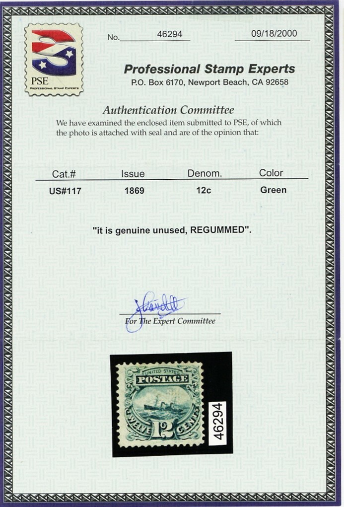 117, Unused 12¢ VF (Regum) With PSE Certificate - Stuart Katz