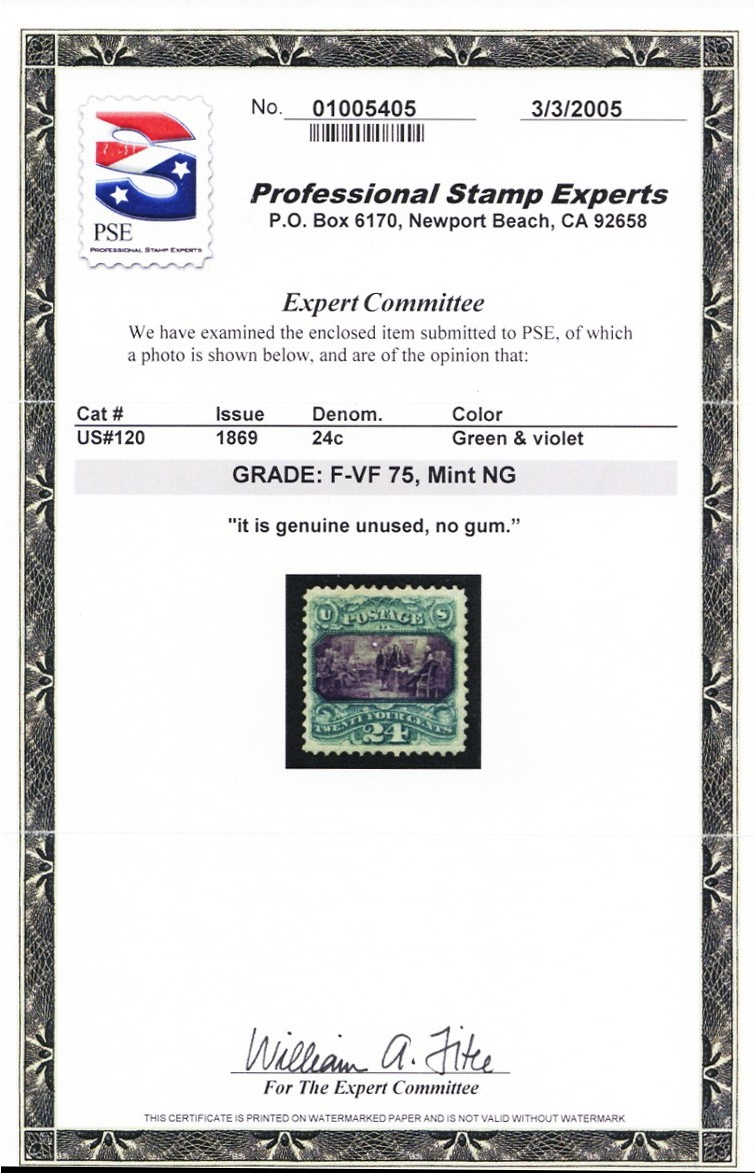 120, Unused 24¢ - Sharp Detailed Impression! With PSE Certificate - Stuart Katz
