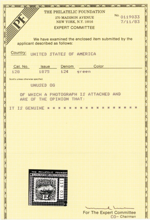 128, Mint VF/XF LH 12ยข Reissue With PFC Certificate - Stuart Katz