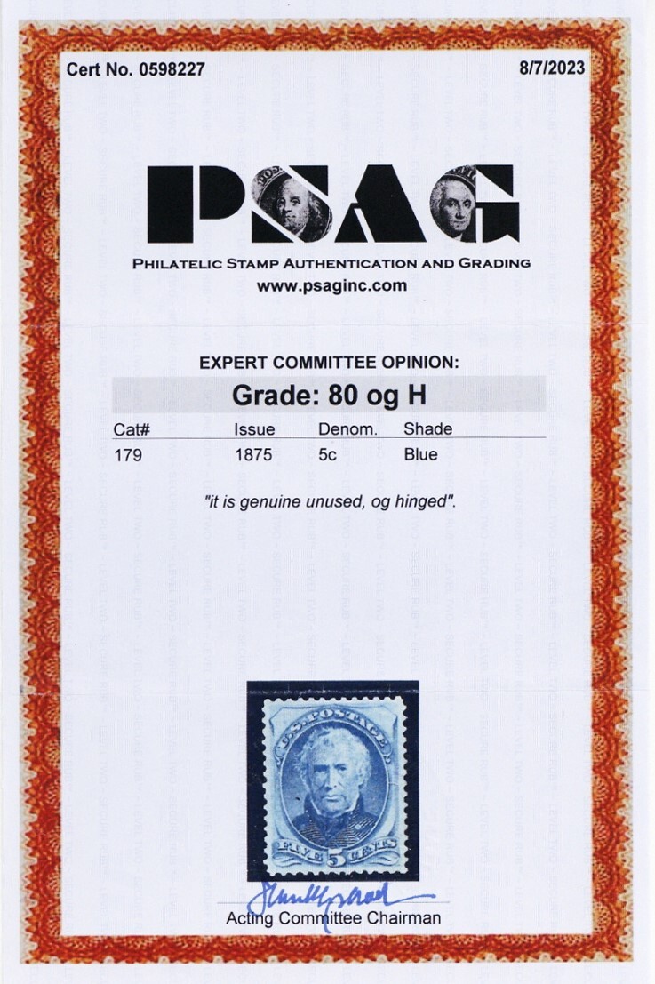 179, Mint VF/XF LH 5¢ - With PSAG Graded Certificate - Stuart Katz
