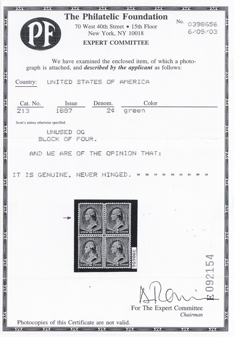 213, Mint VF/XF NH 2¢ - With (copy) PFC Certificate - Stuart Katz