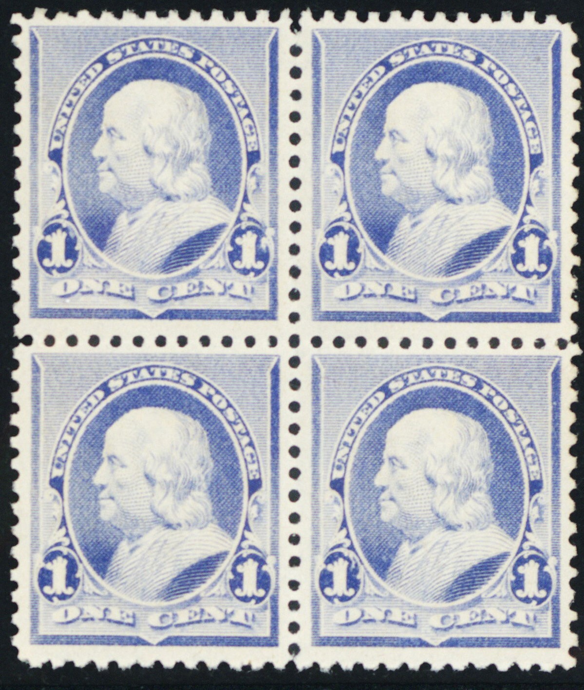 219, Mint NH 1¢ VF Block of Four Stamps SCV $260+ - Stuart Katz