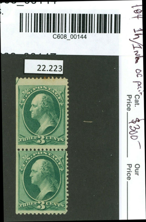 (22223 )  US stamp scott#  184 pair mog 1h/1nh