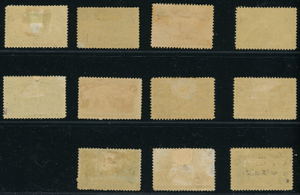 (22307 )  US stamp scott#  230 - 240 MH  (1ct - 50ct Columbian), 30ct thins, some faults as shown