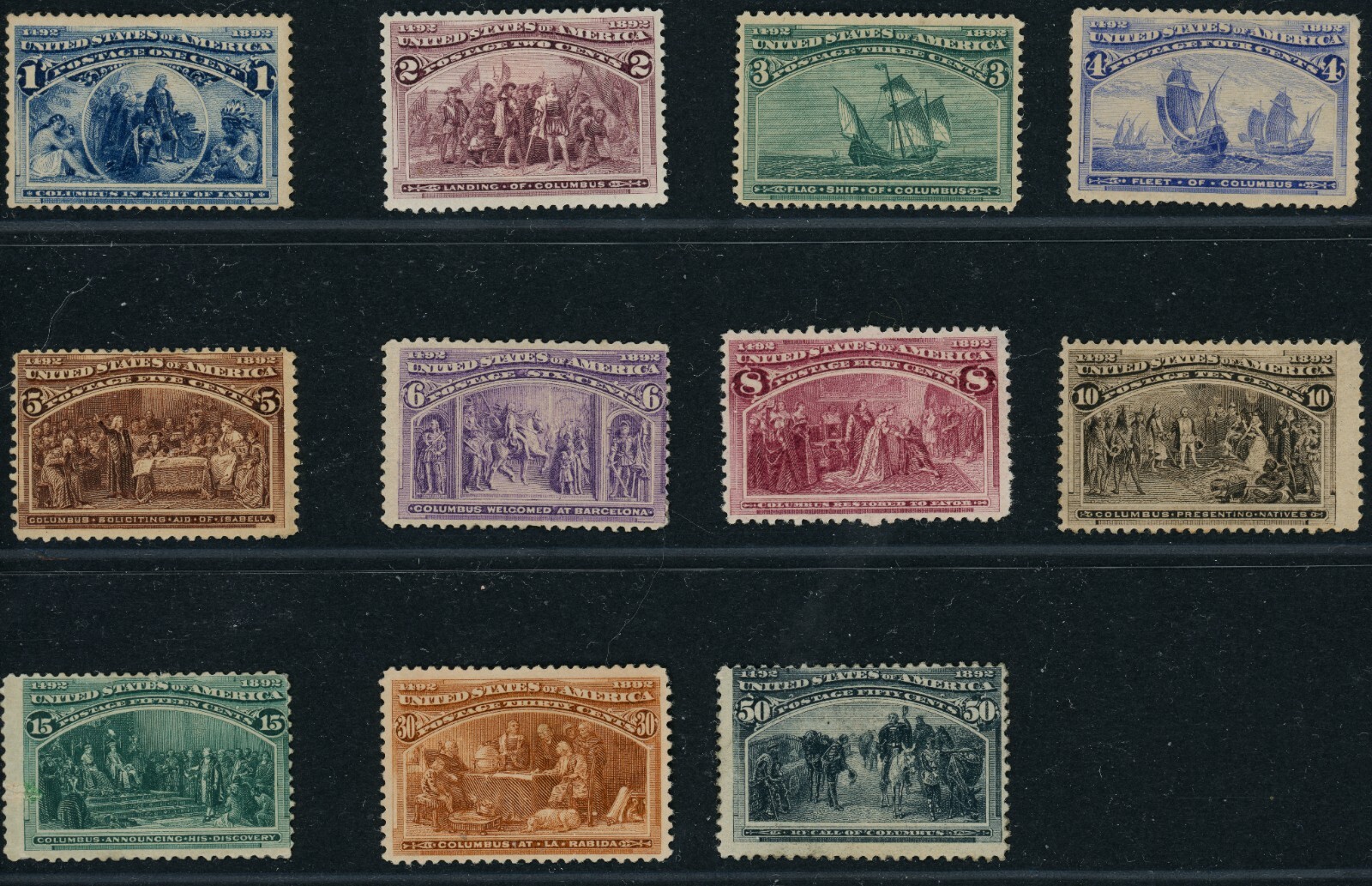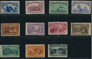 (22308 ) US stamp scott# 230 - 240 MH (1ct - 50ct Columbian, 30ct NG), some faults as shown