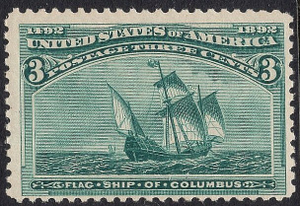 Scott# 232 F-VF MNH OG 3 cent Columbian depicting Flag ship of Columbus. Very fresh and fault free.  This stamp was broken from a block of 4. Scan shows this one has great margins. Nice looking Columbians are really getting tough to find so don't wait too long to buy great stamps from this classic series since the prices are really moving up.