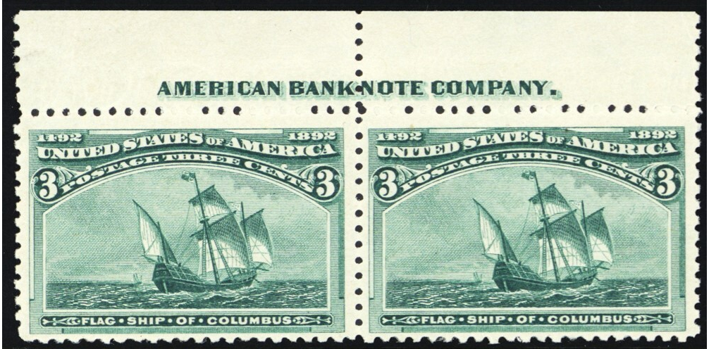 232, Mint NH 3¢ Top Imprint Pair CV $195 * Stuart Katz