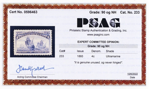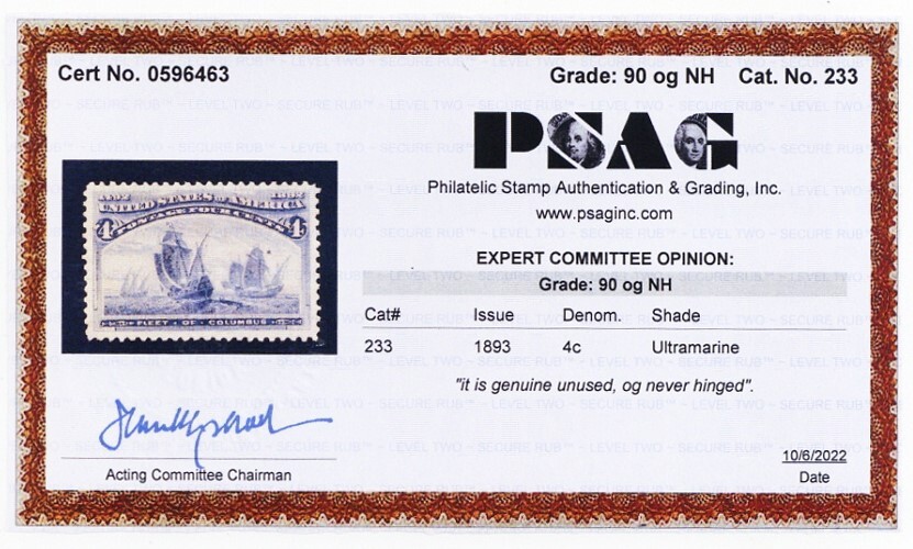 233, Mint XF NH 4¢ - With Graded 90 PSAG Certificate - Stuart Katz