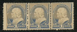 (23473 ) US stamp scott# 212 MINT (1c Strip of 3, no gum)