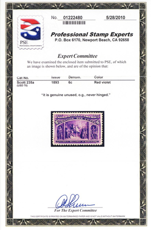 235a, Mint XF NH 6¢ Columbian - With PSE Certificate * Stuart Katz