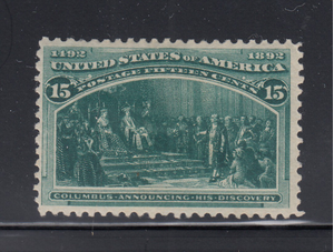 238, 15¢ Columbian, Mint Hinged, rich color, Scott $200