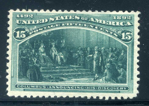 238, 15¢ Columbian, Mint Hinged, small thin, Scott $200