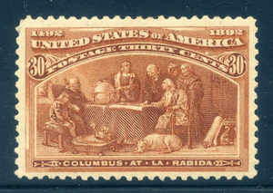 239, 30¢ Columbian, Mint Hinged, small thin, Well Centered, Scott $225