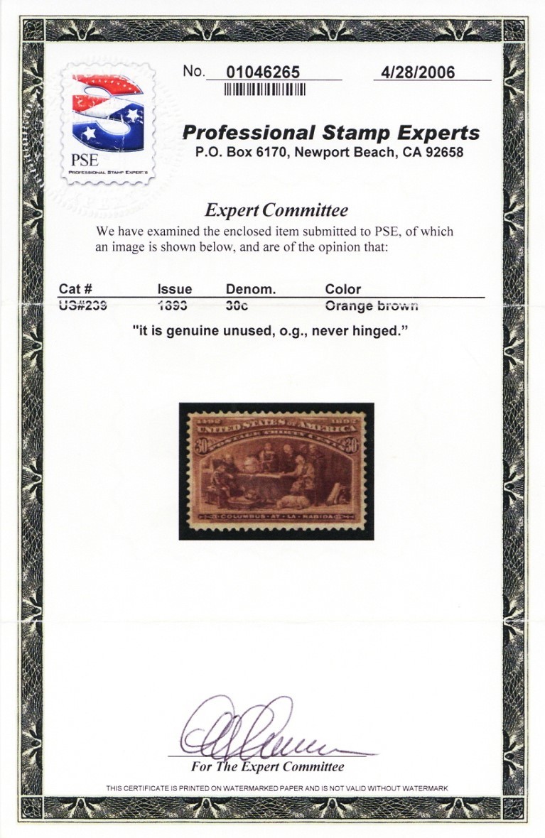 239, Mint VF/XF NH 30¢ With PSE Certificate - Stuart Katz