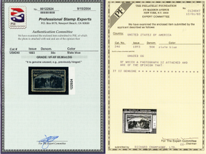 No refunds will be made after 60 days after the sale date unless extra time is granted. Due to the high cost of obtaining certificates we will only refund the cost of the stamp and not the cost of the certificate. For U.S. stamps only certificates from either APS, PSE or from the Philatelic Foundation are accepted, however "graded" certificates or "encased" items are not accepted.