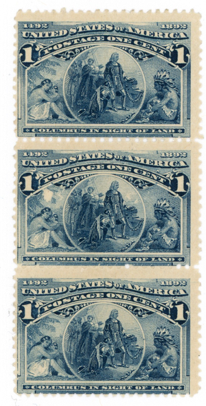 (24118 ) US stamp scott# 230 MNG (1 ct Columbian, strip of 3)
