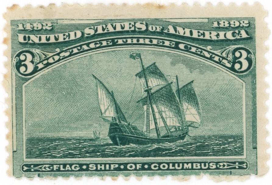 (24131 ) US stamp scott# 232 MH (3 ct Columbian, w/minor faults)