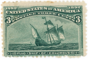 (24131 )  US stamp scott#  232 MH  (3 ct Columbian, w/minor faults)