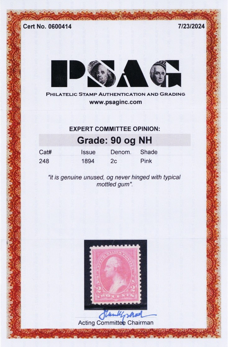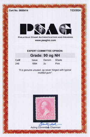 248, Mint XF NH 2¢ With Graded 90 PSAG Certificate SMQ $300 - Stuart Katz