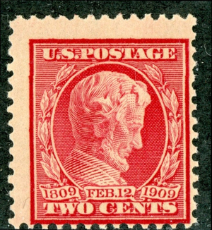 (25118 ) US stamp scott# 369 MNH (1909 2c Abraham Lincoln, Carmine, Bluish Paper)