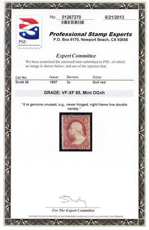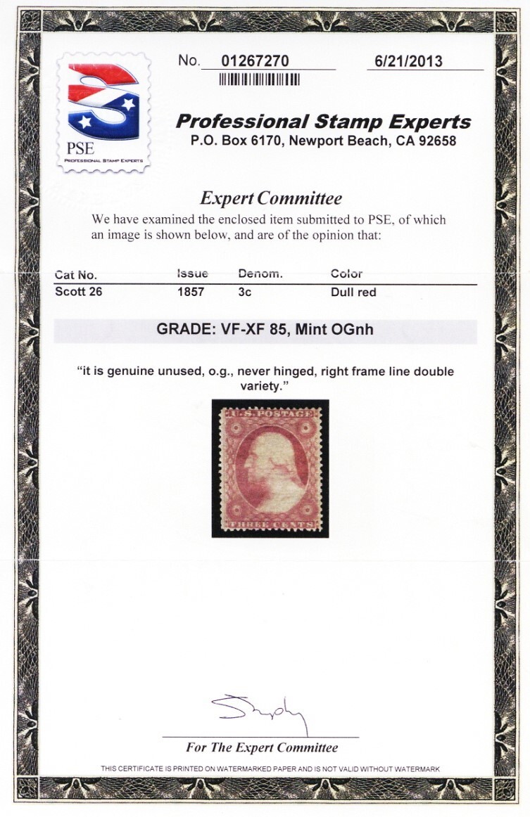 26, Mint VF/XF NH (Double Frame Line) - PSE Certificate * Stuart Katz