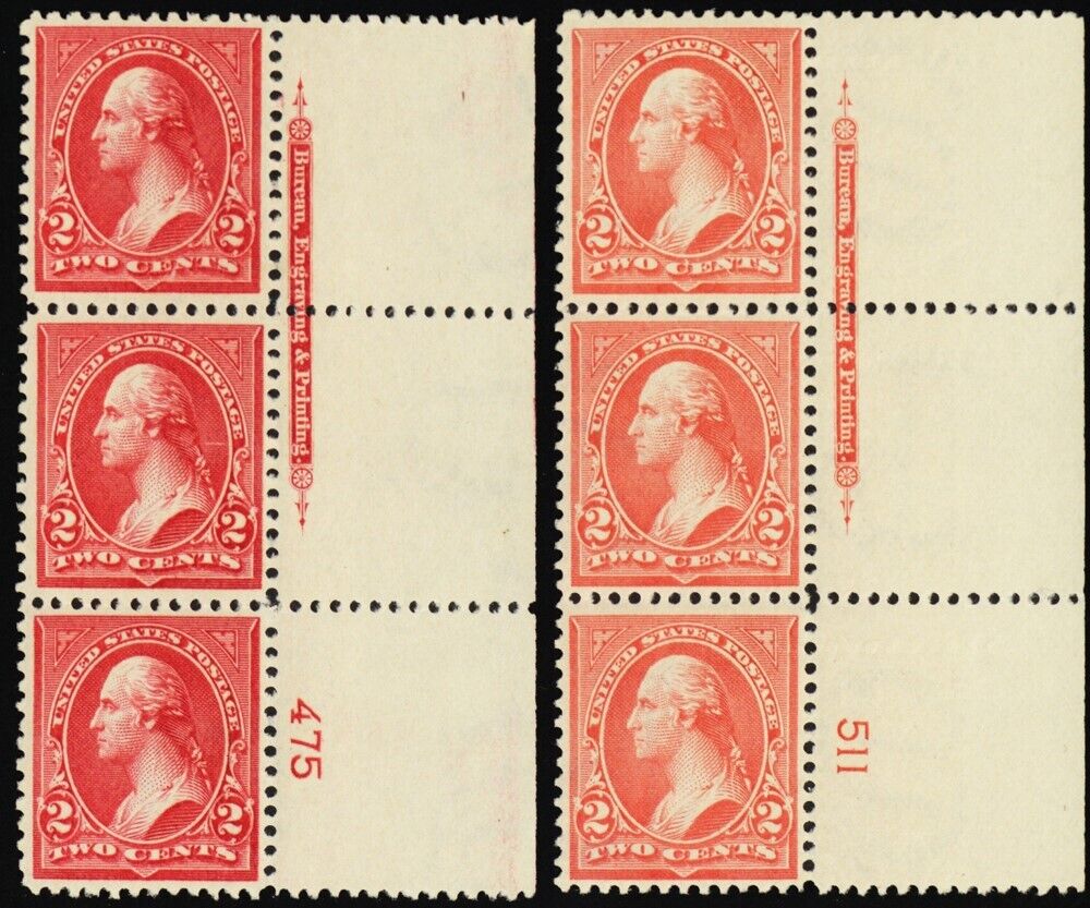 267, 267a (pink) VF NH PL# Strips of Three VERY FRESH! * Stuart Katz