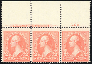 267, PINK SHADE Mint NH 2¢ PL# & Imprint Strip SCV $200.00 - Stuart Katz